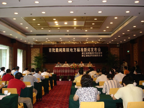 为贯彻落实省委、省政府关于加强节能降耗工作的指示精神,充分发挥能源限额地方标准在支撑循环经济发展、建设节约型社会中的作用,2007年6月29日,省质量技术监督局会同省经济贸易委员会在杭州联合召开我省首批能耗限额地方标准新闻发布会。省政府办公厅、省发改委、省环保局、省统计局、省电监会、省物价局、有关行业协会、新闻单位、用能大户企业的代表出席了新闻发布会。