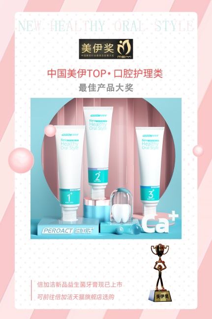 倍加洁2020年度新品益口清新牙膏荣获“2020美伊大赏TOP·口腔护理类最佳产品大奖”。