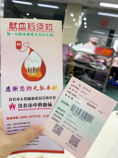 献血完毕后,李锡姮护士拿到了当地的献血证,刚拿到献血证李护便将其交给肾友家属,“有了这个就可以申请输血了”。肾友家属连连道谢,李护只是轻描淡写地说,“没事,情况紧急,你们快去申请吧。”