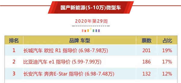 近日,中国汽车行业首次采用1000+汽车行家每周无记名自愿投票的方式,评选出汽车经理人最认同的国产品牌新能源微型车(5-10万)前十名,长城欧拉R1高居榜首,获得了大多数汽车经理人的认可。值得注意的是,本次评选全程实行不接受赞助、不酬谢评委、不支持拉票的“三不原则”,投票结果真实可信。