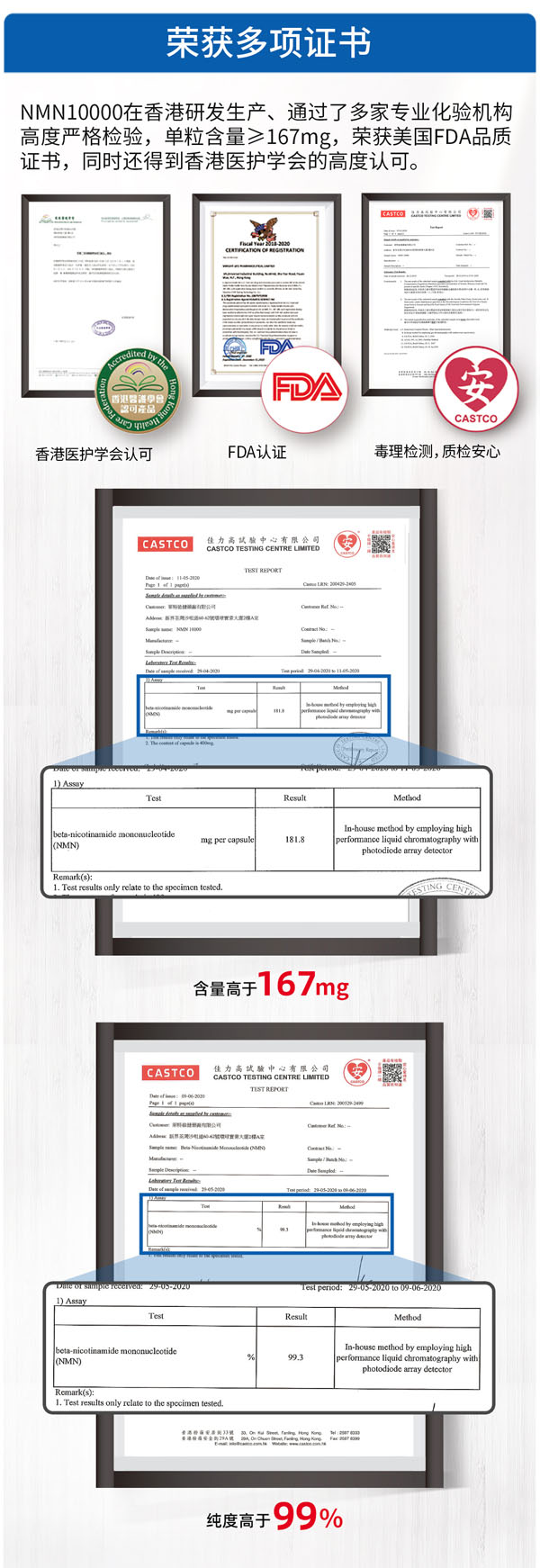在经由多项严格的标准检验之后,莱特维健NMN10000还荣获以美国FDA品质证书在内等多个高品质认定书,其无与伦比的高品质还得到香港医护学的高度认可与强力推荐,莱特维健NMN10000一时风靡国内外市场。