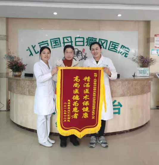 经过治疗后,刘女士的白斑得到了控制,看到病情明显好转,她的心情也放松了不少,为感谢白淑芳主任以及医护团队的精心、耐心的照顾,特意赠送一面锦旗,也希望更多患者都能获得科学治疗,早日走出白斑的困扰。