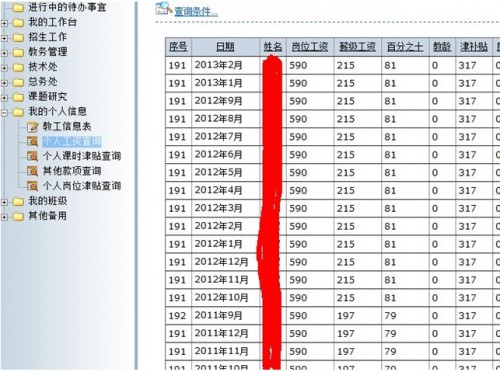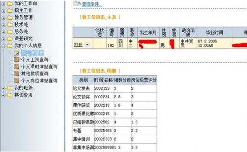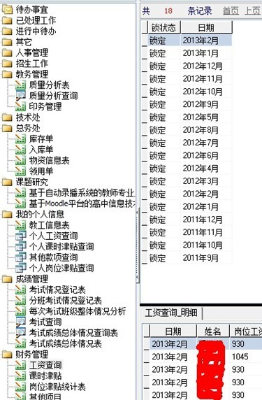 会计室因为业务需要,使用自制的专业软件,所以业务方面没有考虑,只设计了针对全校职工的工资和福利查询业务。