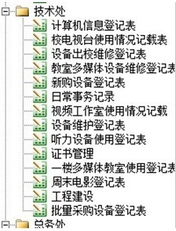 技术处主要负责信息技术课程、学校多媒体设备、电子设备、考试信息处理等工作,工作多,涉及到的部门也多。主要分为多媒体设备的报修和维护登记,资产管理,以及一些日常工作。