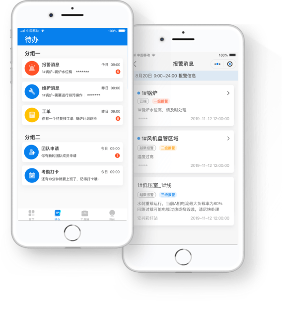 •通过手机APP实时在线监测锅炉、空压、制冷等能源设备运行情况,诊断压力、温度等运行参数和指标情况,及时发现安全、能耗等方面异常,降低设备故障率,挖掘节能空间,实现线上线下一体化智慧运维,助力设备安稳运行;