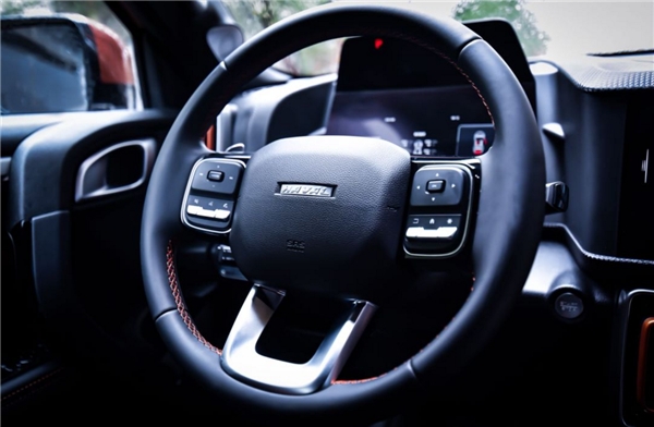 要说年轻人买车,颜值一定是重要打分项,我老婆便轻松被哈弗大狗的外观造型轻松圈粉。用店内小哥的话来说,这叫“心潮力量美学”设计,虽然我对这个新词语不甚了解,但这并不妨碍我欣赏哈弗大狗的外观造型,无论是厢式车身、平直锐利如悬崖峭壁一样的车身线条、黄金海岸线一般的车身腰线,还是地球之眼圆形大灯,都使得整车在极具力量感的同时,多了一分复古气质,难怪哈弗大狗能被网友们称为“网红车型”。