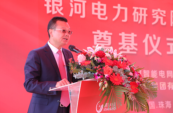 奠基仪式上,银河电力集团董事长王功勇先生首先致辞。他表示,银河电力集团目前已成为多业态、国际化的集团公司。银河电力集团在粤港澳大湾区核心地段珠海创新海岸投资布局“银河智能配电产业基地”和“银河电力研究院”,其中电力研究院建成后将引进世界一流科研人才及研发设备,深入在智能模组、智能配用电、光伏新能源等领域的关键技术研究,这将成为集团长远发展的又一坚实根基。