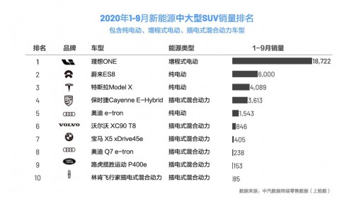 从单月销量来看,理想ONE无疑是完胜同级对手,且更是整个新能源SUV中销量最出色的车型。而从1-9月总销量来看,理想ONE的表现是相当的出众。1-9月,理想ONE总交付量为18722台,而位居第二的蔚来ES8总销量仅为6000台,理想ONE的销量已达到其3倍之多。值得一提的是,这也是理想ONE连续9个月蝉联新能源中大型SUV市场冠军。