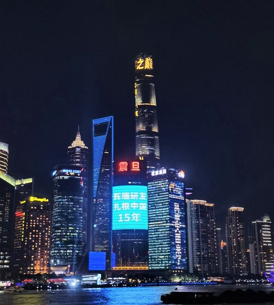 “中国研发中心自2005年在上海设立至今,各职能部门不断构建、团队规模不断在扩大、员工的专业能力不断在提升,分布在50多个研发职能部门的中国同事们已经成为辉瑞全球研发团队不可或缺且持续做出显著贡献的重要组成,我们将始终如一地致力于促进本土研发能力、体系、技术和文化的提升。”辉瑞中国研发中心总经理陈朝华女士在庆典仪式上分享道。10月30日,上海、武汉、北京三地办公室同时连线举办了15周年庆典活动,当晚上海黄浦江畔标志性震旦大屏亮灯联动,共贺辉瑞中国研发中心成立15周年。