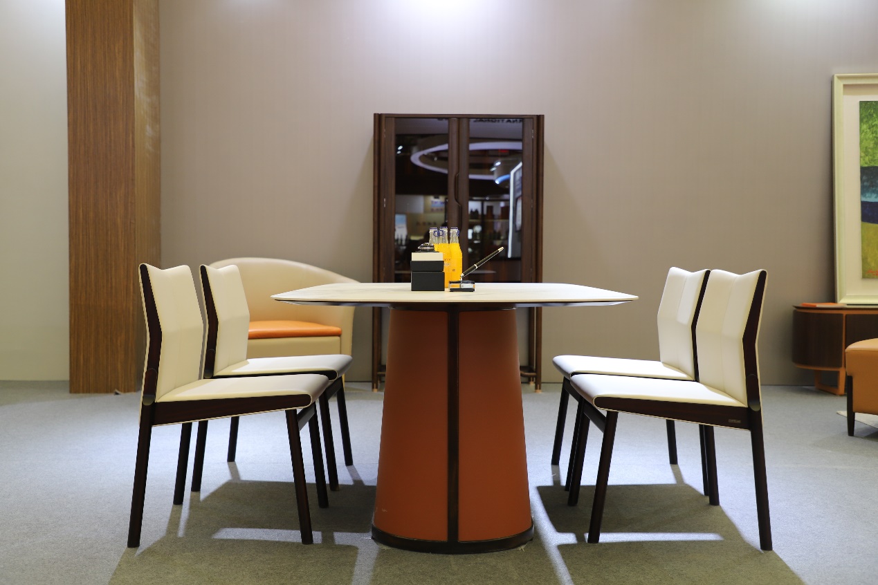 海派人文展示区将亚振麦蜂Maxform和AZ1865的产品结合在一起,整体空间在舒适和人文艺术之间达到共振,方形沙发与大理石餐桌的围合,让家人相处的时间融洽自然。