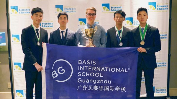 Eric, C.和Edward, L.作为广州贝赛思国际学校代表队成员在全美经济挑战赛夺冠
