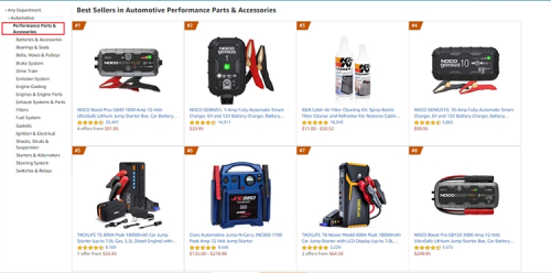 应急启动电源的跑火也在亚马逊得到了验证,其“汽车性能及零部件”(Automotive Performance Parts & Accessories)Best Sellers榜单中,应急启动电源更是呈刷屏模式。