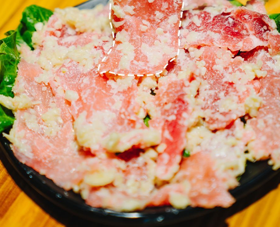 每一块肉都是艺星老板大清早去市场抢到的“黄瓜条”。这道刚上市的蒜蓉牛肉没有一点筋,肉质格外嫩滑、脂肪含量极低,随意夹一块都是极佳的品质。