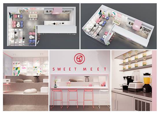 甜不甜门店打造轻奢生活理念,店面以粉色、白色和高级灰为主色调,营造清新别致的空间氛围。模块化的细分可以让商家随意搭配和组合门店内的模块,满足不同投资者的装修需求,同时减少装修时间,快速开店,并且投资商可根据实际情况选择适合自己的装修物料,大大的降低了装修成本。相比传统装修节省20-30%的成本费,门店装修时长可缩短7~15天。