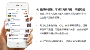 我发现竟然还能和没有好友关系的人直接沟通和推送内容,简直强大到没朋友!当然,你的社群人再多都不怕,因为没有半毛钱关系的,彼此间沟通是隔离的(意思应该就是能防止别人加好友切你的客,乱发广告搞死你的群)。