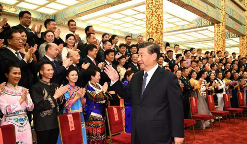 人民大会堂万人大礼堂灯光璀璨,处处欢声笑语。20时许,习主席等来到晚会现场,全场响起热烈的掌声。一个个节目,民族特色鲜明、表现形式多样、 时代气息浓厚,精彩纷呈,把晚会不断推向高潮。整台晚会热情讴歌了以习主席同志为核心的党中央的坚强领导和对各族人民的亲切关怀,生动展现出中华文化的绚丽多彩、丰富内涵,生动描绘出各族儿女像石榴籽一样紧紧拥抱在一起共同团结奋斗的壮美画卷,充分反映出中华儿女建设中华民族共有精神家园、坚定不移跟党走、昂扬奋进新征程的坚定决心和豪迈气概,全场不时响起热烈掌声。最后,伴随着《这是我们美好家园》的激扬旋律和各族演员的尽情欢舞,晚会落下帷幕。