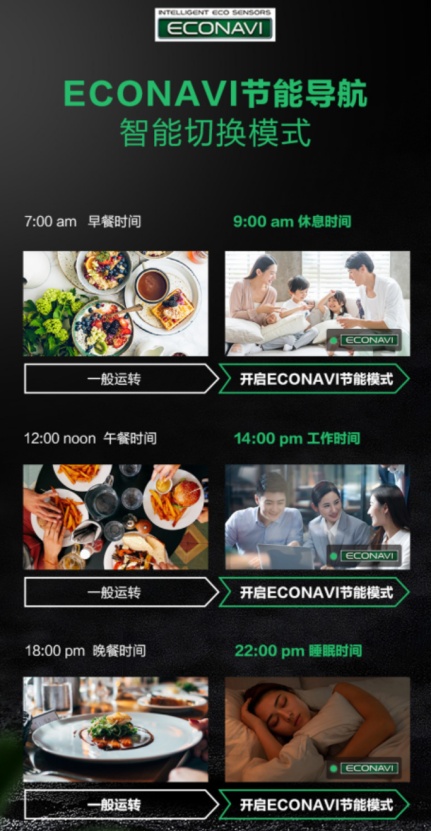 作为松下的高端机型,E452系列新品搭载的ECONAVI节能导航,大幅提升产品的节能环保能力。针对收纳量、果蔬室温度、门开关频率等重要参数,在冰箱各个重要位置安置感应器,实时监测冰箱运行状态,系统则根据反馈自动调整运行模式,用户无需刻意设置即可实现节能低碳。