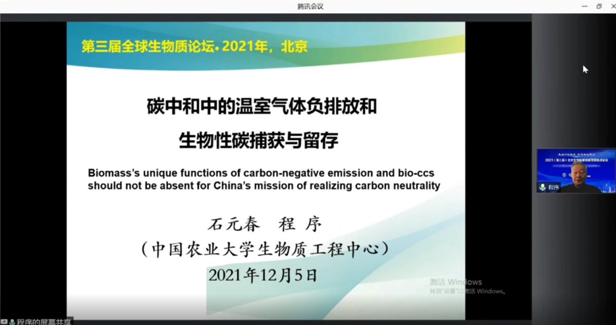 中国科学院、中国工程院、第三世界科学院院士、中国农业大学原校长石元春和中国农业大学教授程序在发言中则尤为强调了生物质能独特的负碳排放作用以及生物性碳捕获与留存功能。他们建议:要重视生物质能的负碳排放功能,大力推广燃煤耦合生物质发电和BECCUS;充分利用有机废弃物,扩大边际土地种植能源植物(灌木,草类,林);挖掘生物性碳捕获与留存的巨大潜力。此外,他们还呼吁落实对沼气-生物天然气的政策支持,加大纳入碳排放权交易,特别是甲烷减排的份额。
