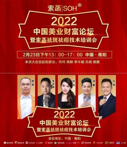 2022年2月23日,大秦招商携手2022中国美业财富论坛暨索菡祛斑祛痘技术培训会在南阳盛大召开,本次招商会由大秦招商全程策划。