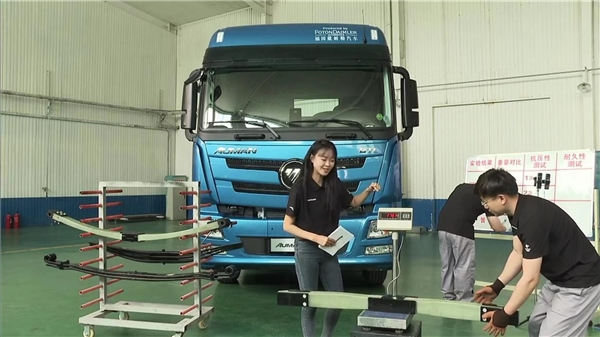 值得注意的是,除实验数据外,复合材料板簧的安全指数与维修便利程度同样优于金属板簧。根据欧曼研发中心整车特性总工程师、悬架系统设计高级经理李军介绍,基于材料特性,复合材料板簧并不会发生脆断现象,而是呈线性断裂,卸去货物后即可回弹继续行驶,安全性和维修便利性都远高于金属板簧。