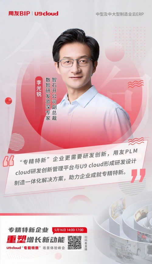 5月16日下午,由用友主办的“成长型企业数智化创新峰会”首场U9 cloud“专精特新”场景体验峰会圆满落幕。本次峰会解答了专精特新企业在发展过程中存在的困惑,深度剖析了专精特新企业相关政策的发展指引,北交所的成立也为专精特新企业IPO拓宽了融资渠道,通过数智化升级,激发专精特新企业的增长动力,为更多专精特新企业高速发展点亮前行的方向。