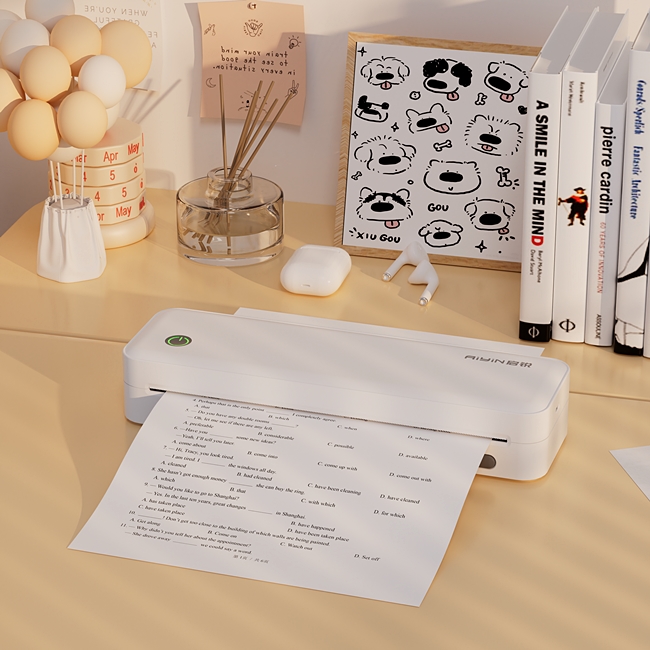 第一眼见到AiYin启锐家用便捷打印机,最直观的感受就是“小”。机身尺寸仅为传统文具盒大小,重量轻,可以轻松放入背包夹层。纯白简约的设计风格搭配圆润边角,无论是放在书桌、办公桌还是儿童书桌上都不显突兀,反而增添了几分科技美感。