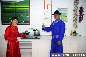 记者走进展示的农家厨房,看到一个观众指着灶台问:“你家既然用上了沼气,为什么还不拆掉这个灶台啊?”来自湖北恩施的向休绘说:“平时用沼气做饭照明就够了,这个灶主要是家中客人多的时候才用。但是这个灶也不是普通的灶,而是省柴节煤灶,比传统灶能节柴30%多。”记者了解到,目前全国已有1.9亿农户使用省柴节煤灶,这应该是全球参与人数最多的节能项目了。
