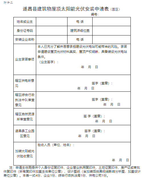 附件二:《遂昌县建筑物屋顶太阳能光伏安装申请表》(园区)