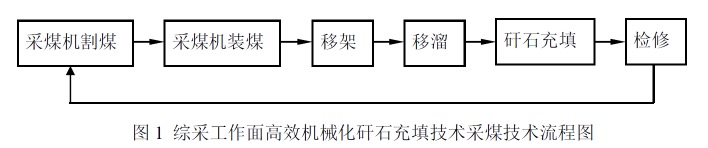 利用综采工作面高效机械化矸石充填技术采煤的工艺流程见图1。