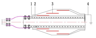1-管导体,2-电容屏,3-接地屏